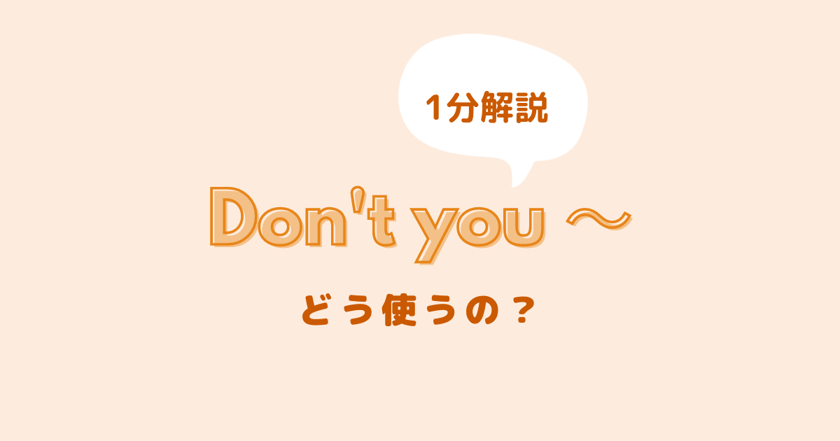 この記事では「Don’t you 〜」の意味や使い方について例文を交えて解説していきます。