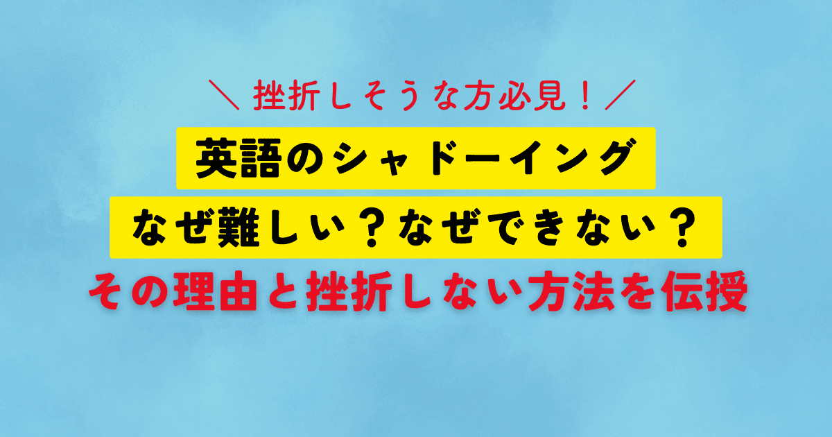 「シャドーイングに挑戦してみたけど、全然ついていけない」「シャドーイングが難しすぎて挫折しそう」