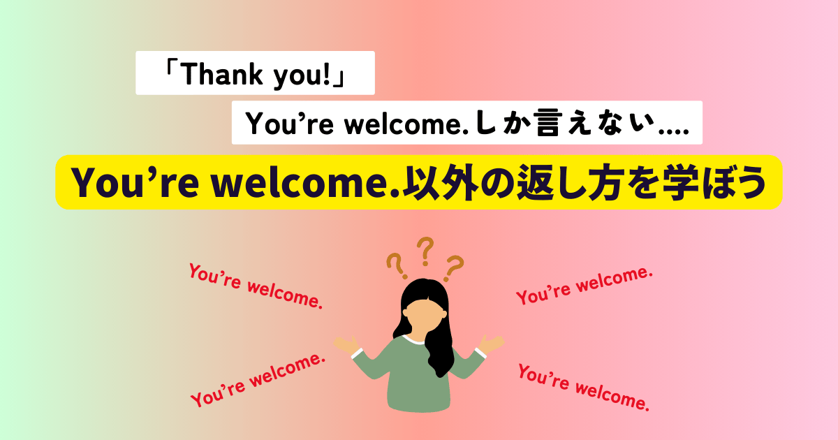 英語を習い始めた時、誰もが最初に教わるフレーズが「Thank you.」に対する「You’re welcome.(どういたしまして)」ですよね。