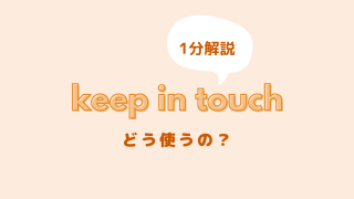 意味・使い方keep in touch の意味や使い方・例文 この記事では keep in touch の意味や使い方について例文を交えて解説していきます。まずは keep in touch が使われる例文を見ていきましょう。titleご家族は?My family in JapanB安田さん、アメリカ...2023.10.04意味・使い方