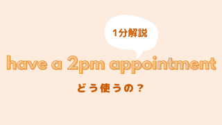 意味・使い方have a 2pm appointment の意味や使い方・例文 この記事ではhave a 2pm appointment.の意味や使い方について例文を交えて解説していきます。2022.08.19意味・使い方